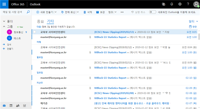 | 제목 | 오피스365(Outlook) 이용자 팁 | ||||