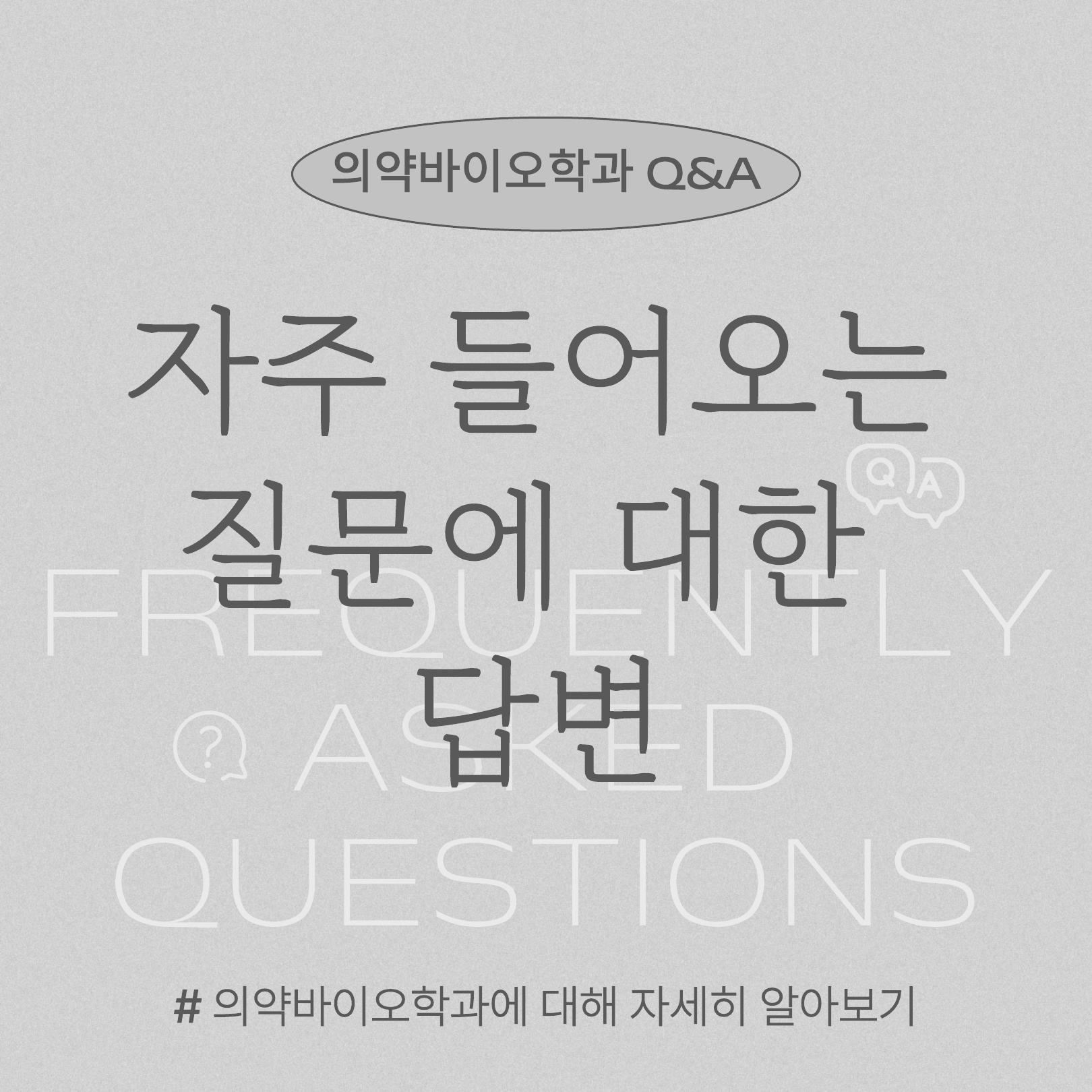 『 예비 신입생을 위한 의약바이오학과 Q&A 』글의 상세내용을 확인하는 표로 제목, 부서명, 등록일, 조회, 첨부, 내용으로 나뉘어 설명합니다.