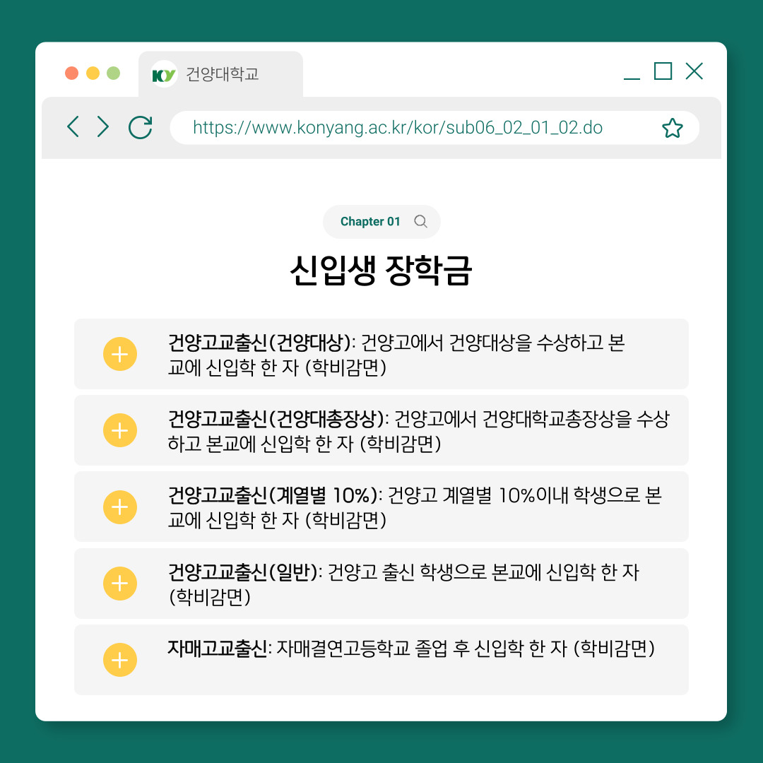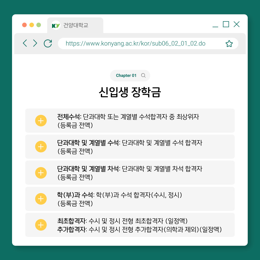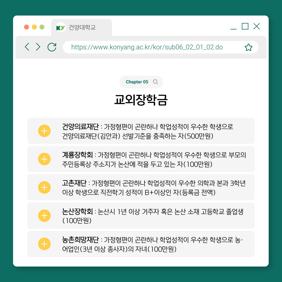 [카드뉴스] 건양대학교 장학금 총정리 글의 상세내용